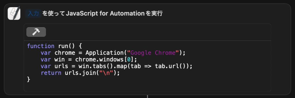 Google Chromeのアプリケーションを呼び出しています。これにより、Chromeのウィンドウやタブの情報を操作できるようになります。