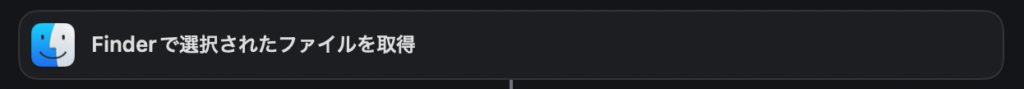 アクション検索欄に「Finder」と入力して、表示された検索結果から「Finderで選択されたファイルを取得」を選択してワークフローへ追加
