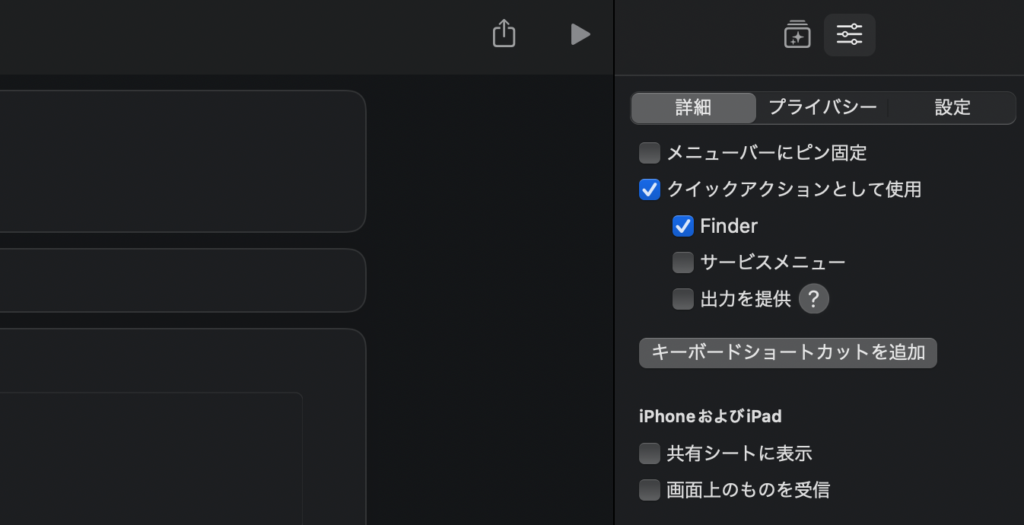 - 作成したショートカットをFinderのクイックアクションから実行できるように設定