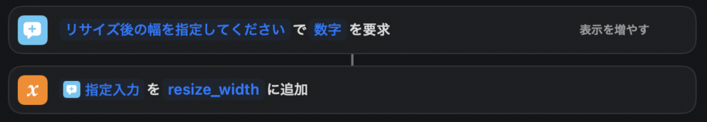 - 追加したアクションの変数名に「resize_width」と入力