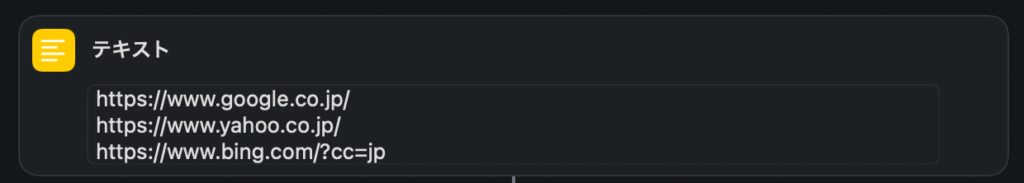 - 追加した「テキスト」の入力欄に開きたいURLごとに改行で並べる